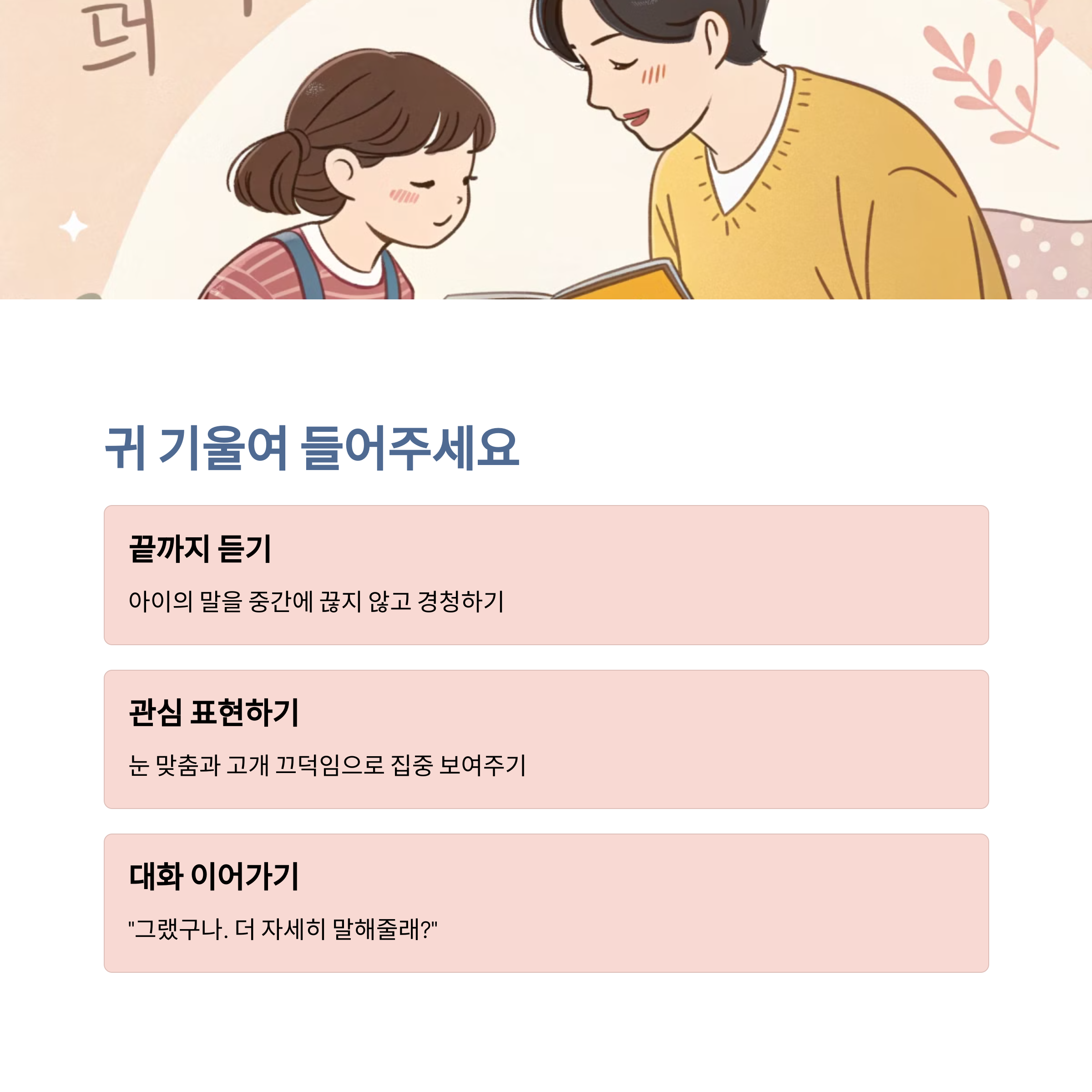 | 대화법의 중요성 | 공감과 수용을 담은 말이 감정 성장에 도움 |
