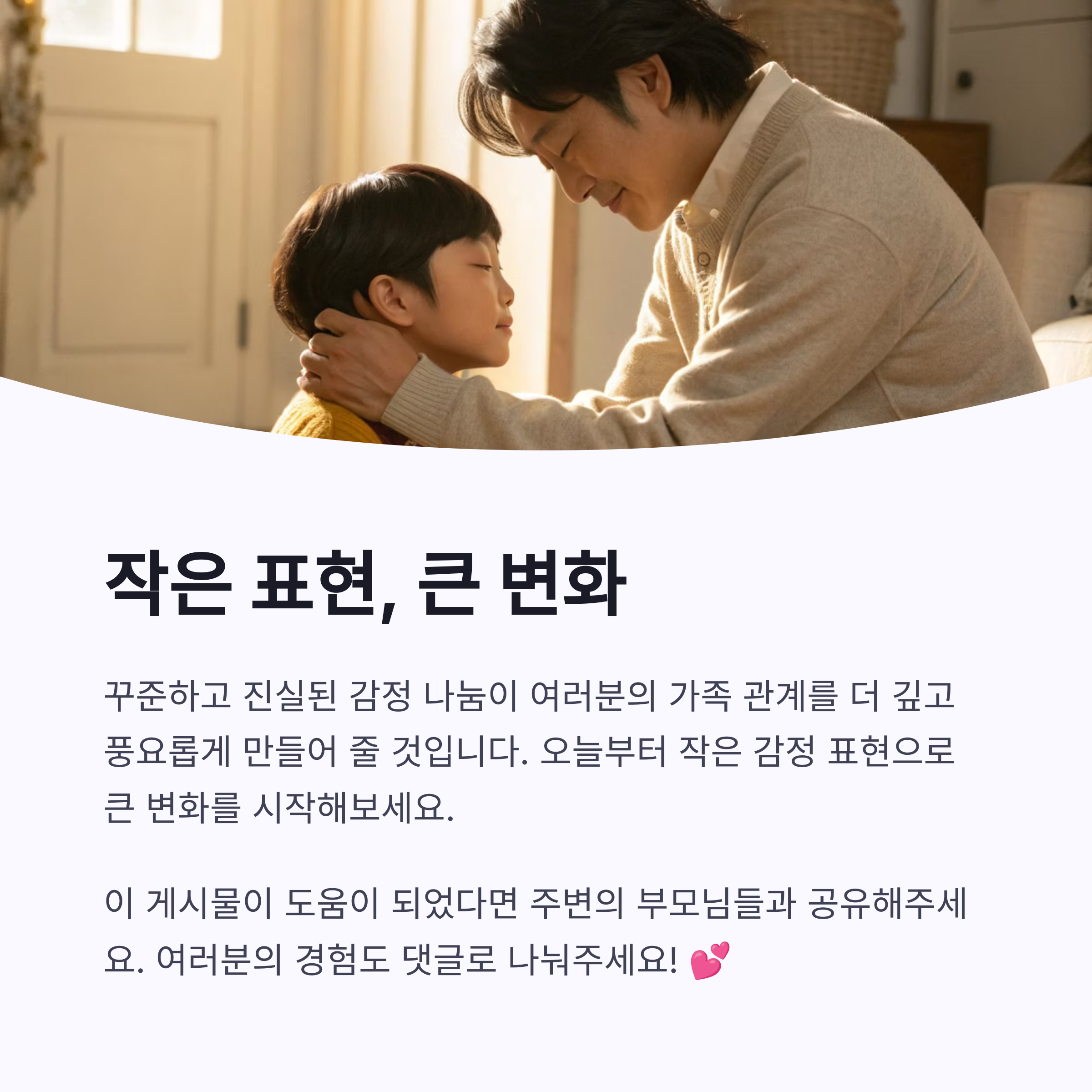 감정 나누기를 실천한 경험, 또는 효과 있었던 대화 방법이 있다면 댓글로 남겨주세요. 함께 나누는 이야기가 또 다른 부모에게 큰 힘이 됩니다.