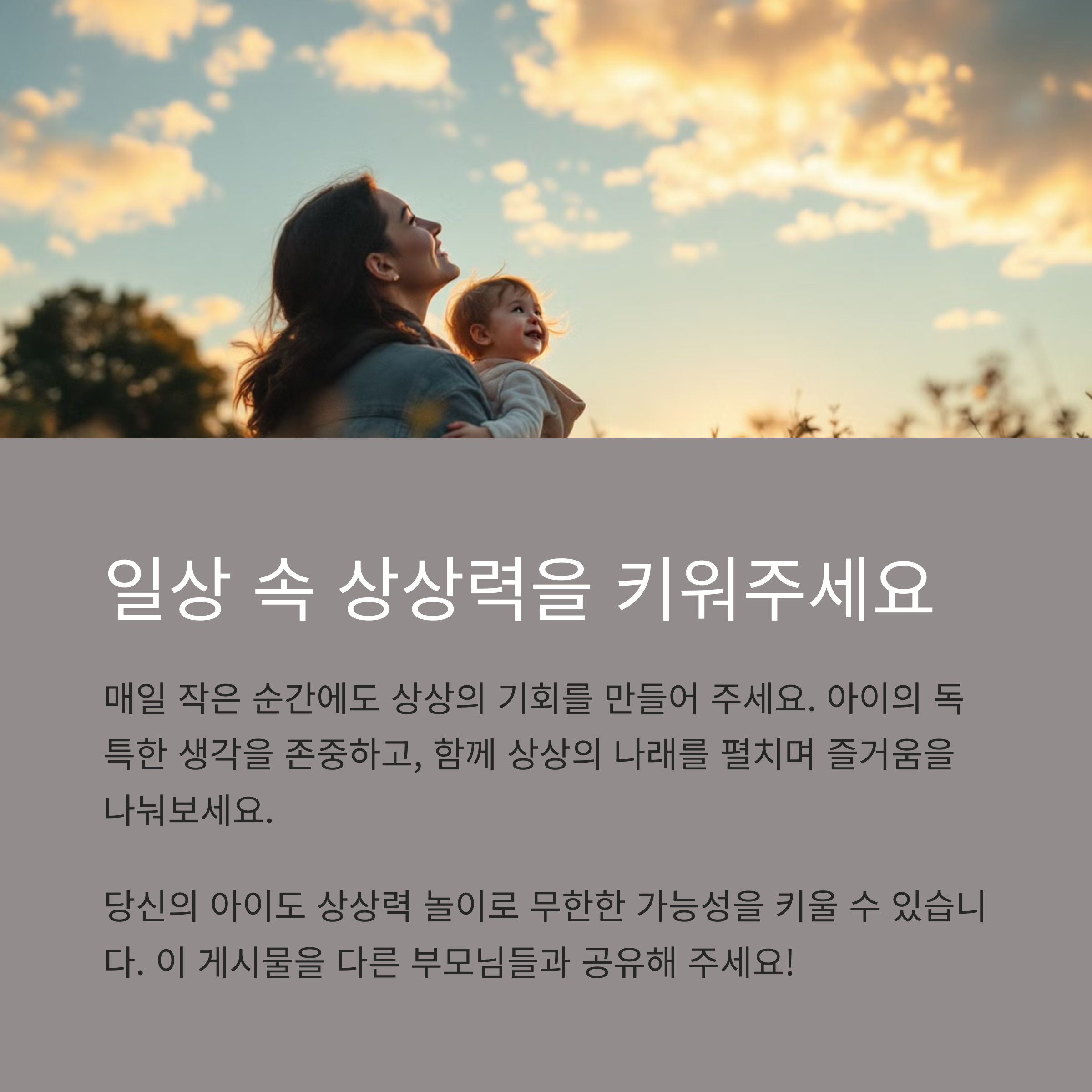 자녀와 함께한 창의 놀이, 어떤 경험이 있으신가요? 댓글로 놀이 방법과 반응을 나눠 주세요. 함께 상상력 키우는 시간을 즐겨요!
