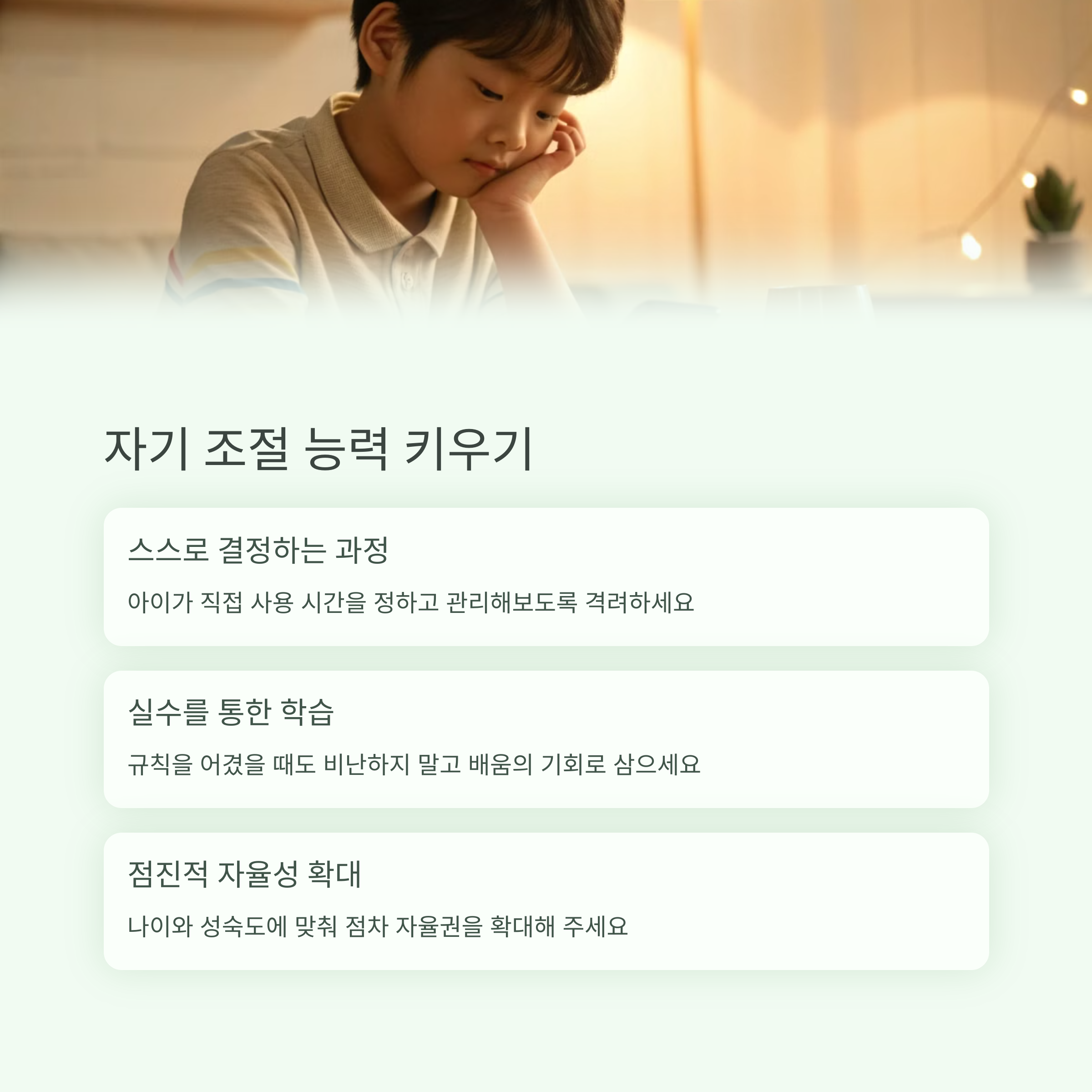 | 어길 때는 다시 함께 조율하기 | 감시보다 소통 중심 접근 | 습관 형성으로 자기조절력 강화 |