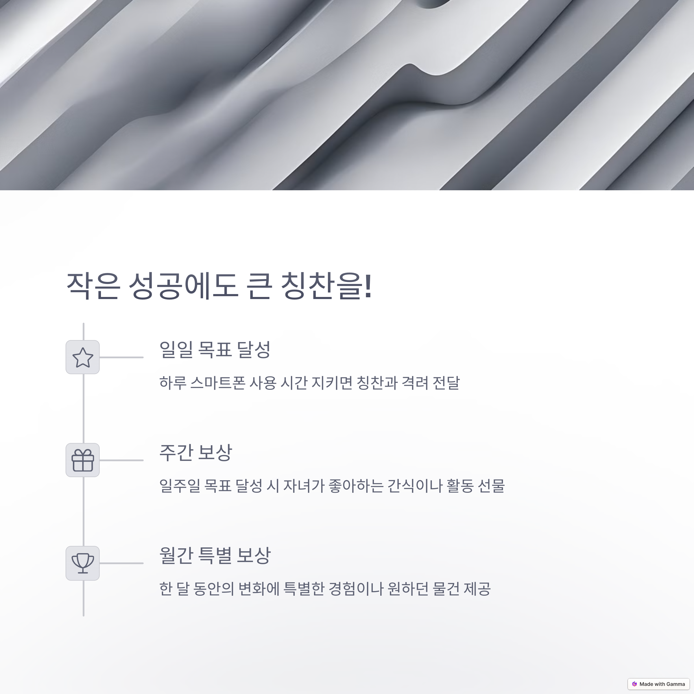 지속적인 피드백과 칭찬도 행동 변화에 큰 도움이 됩니다. 자녀가 사용 시간 조절을 실천했을 때는 작은 보상을 통해 긍정적인 강화를 해주세요. 강요보다 자율성을 존중하면 스마트폰 사용은 자연스럽게 줄어들며, 자녀의 자기조절 능력도 함께 향상됩니다.