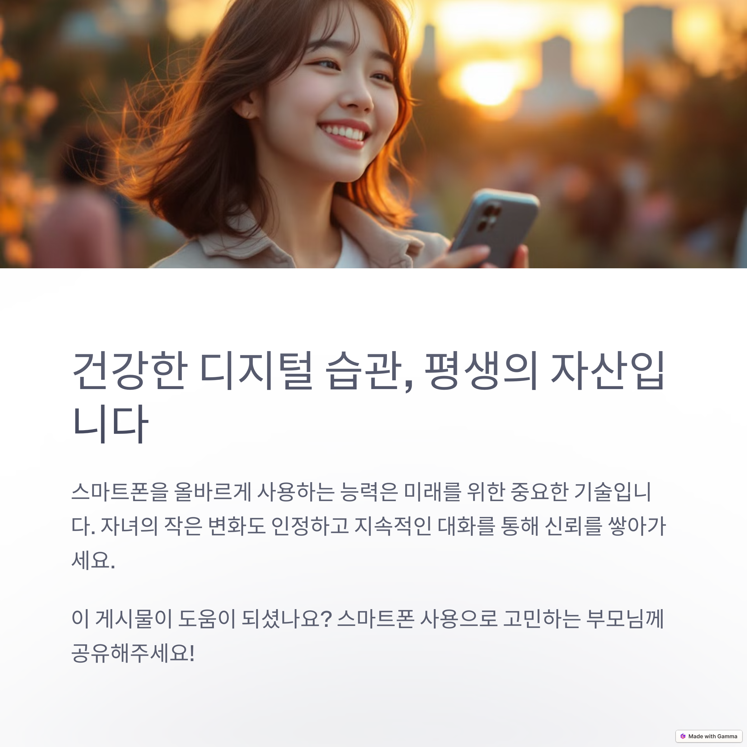 자녀의 스마트폰 사용 줄이기, 어떻게 실천하고 계신가요? 댓글로 여러분의 방법과 경험을 공유해 주세요.
