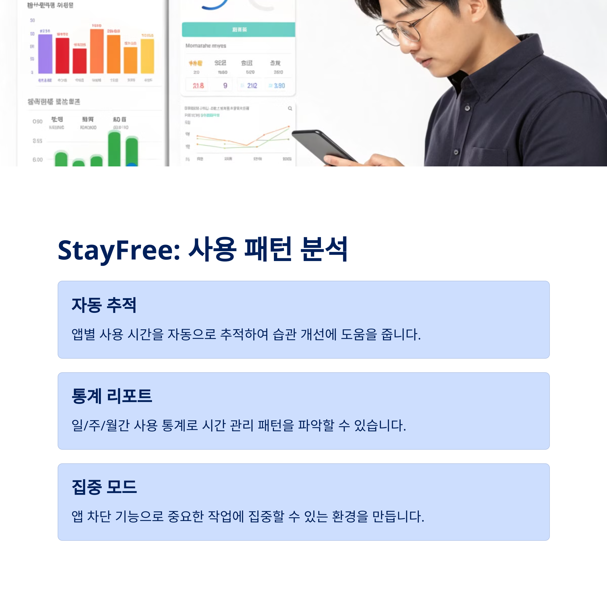 | 스마트폰 사용시간을 시각적으로 확인 | 알림, 앱 차단 등 기능으로 습관 교정 | 집중력 향상과 생산성 개선에 효과적 |