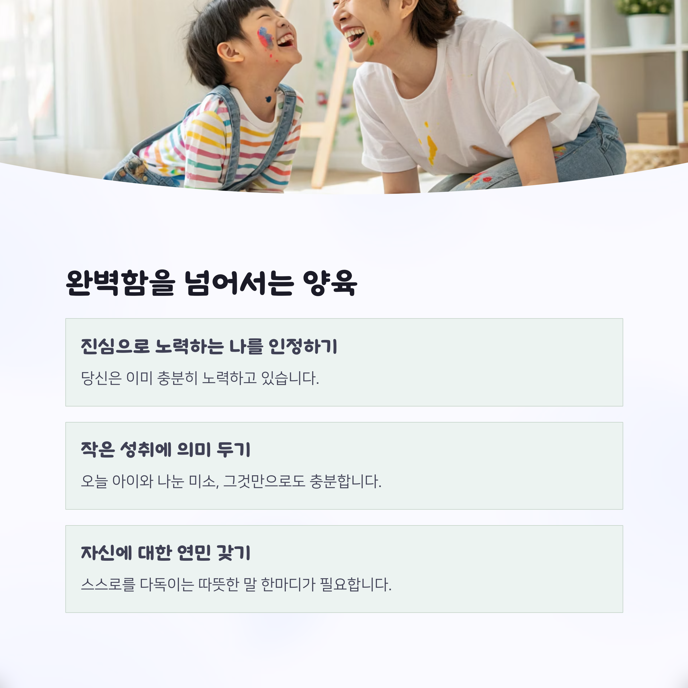 | SNS 비교로 인한 자존감 하락 예방 | 완벽보다 진심이 담긴 육아가 중요 | 정리된 공간은 스트레스를 낮춰줍니다 |