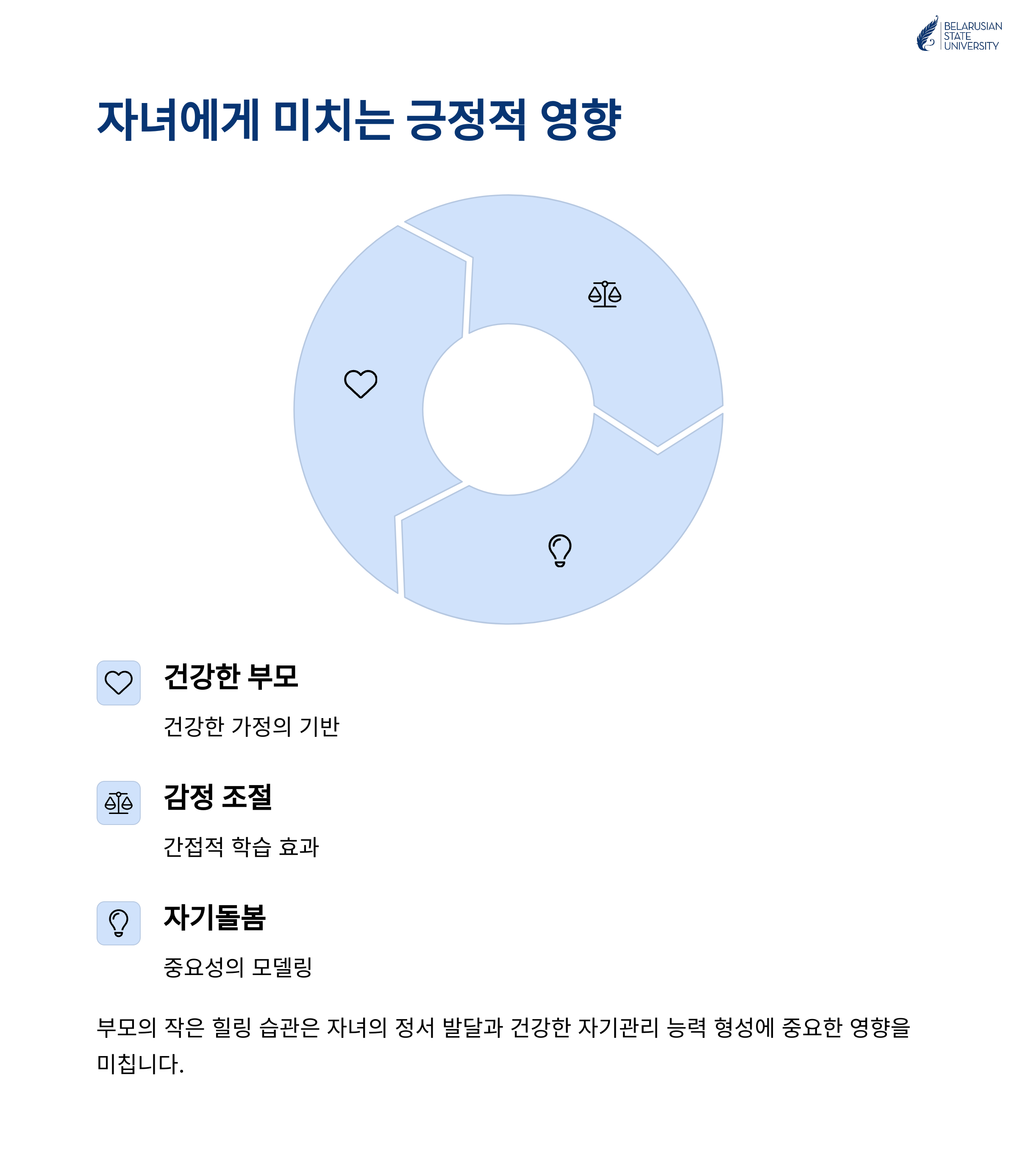 | 부모를 위한 정서 회복 활동 소개 | 아침 루틴, 저녁 명상, 커피타임 추천 | 짧은 활동으로 우울감과 스트레스 완화 |