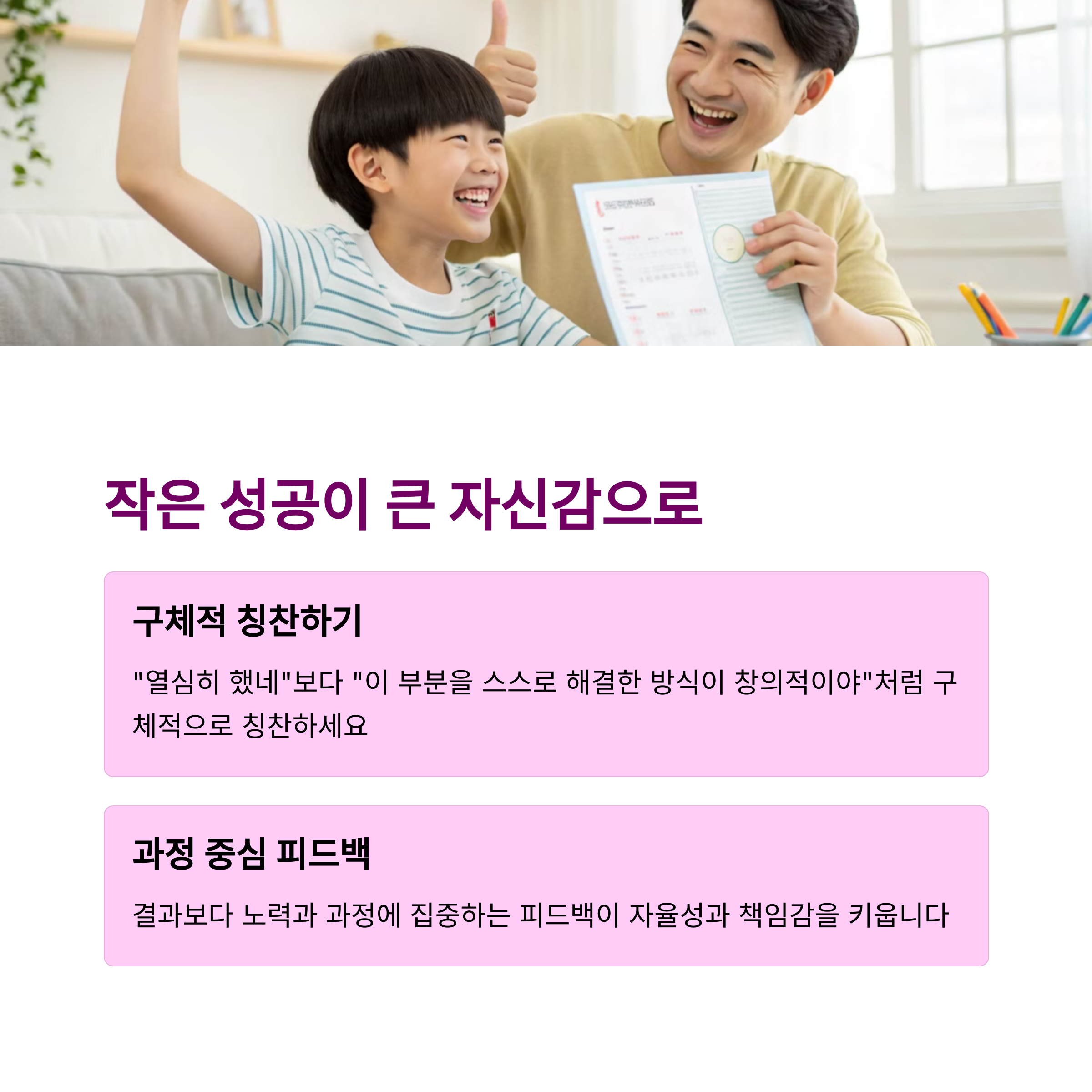 | 목표 설정, 계획 실천, 자기 점검 | 지시에서 대화와 격려로 전환 | 자신감, 성취감, 책임감 향상 |