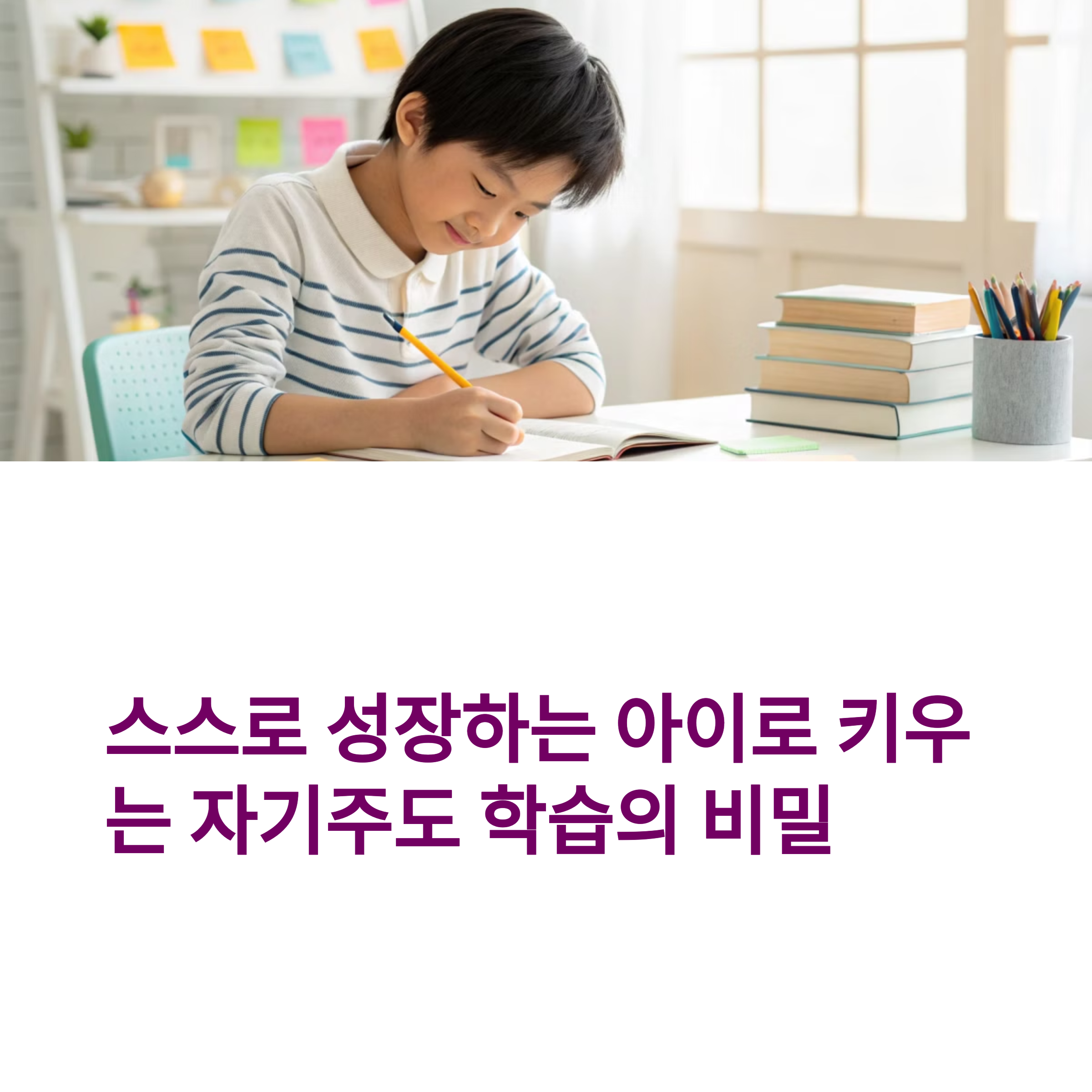 자기주도 학습은 부모의 작은 변화로 시작됩니다. 아이에게 신뢰와 선택의 기회를 주고, 과정과 노력을 인정해 주세요. 꾸준한 실천이 자율적 학습 습관을 만들고 아이의 미래를 바꿉니다.