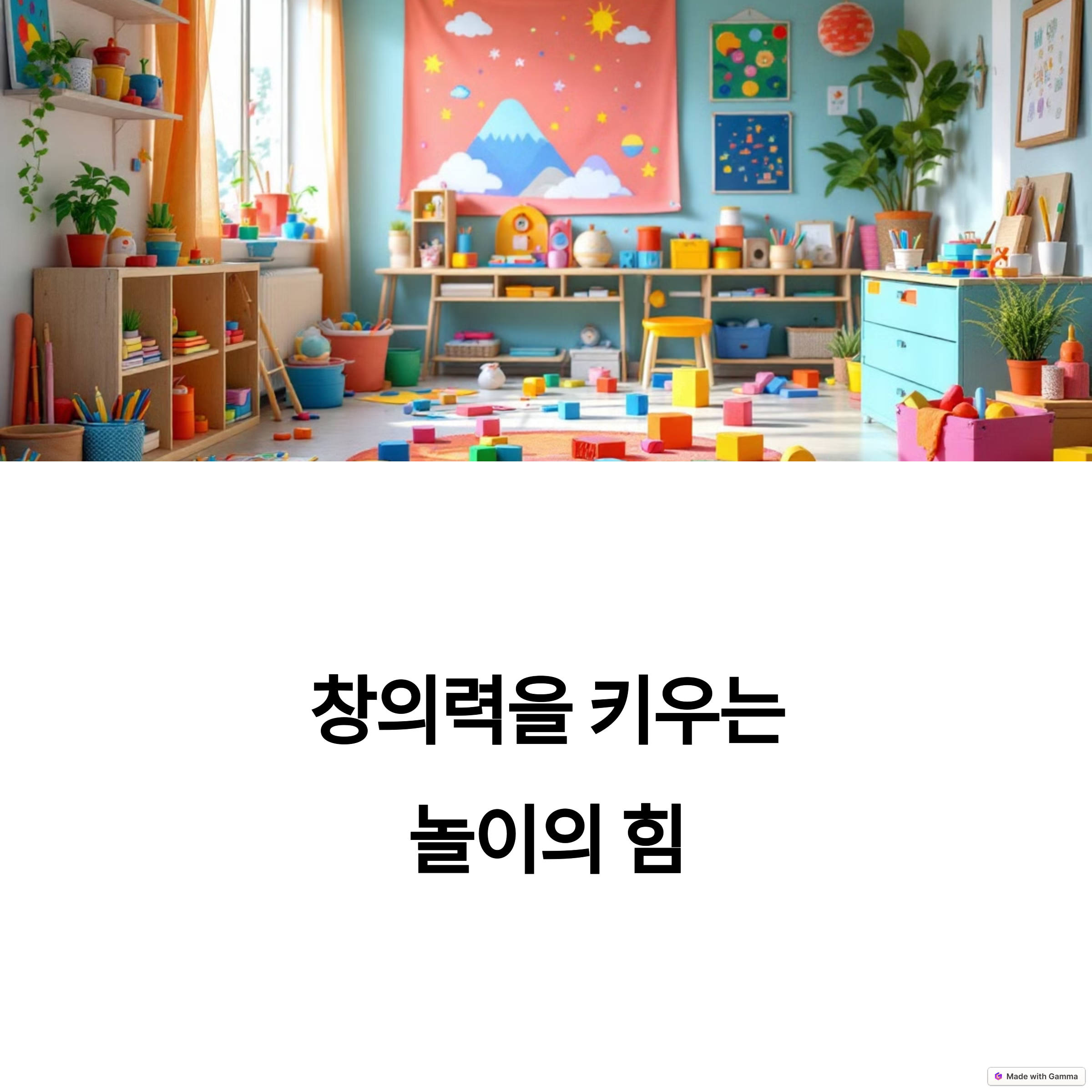 | 정답 없는 자유 놀이 | 스트레스 완화, 흥미 지속 | 긍정적 정서 발달 |