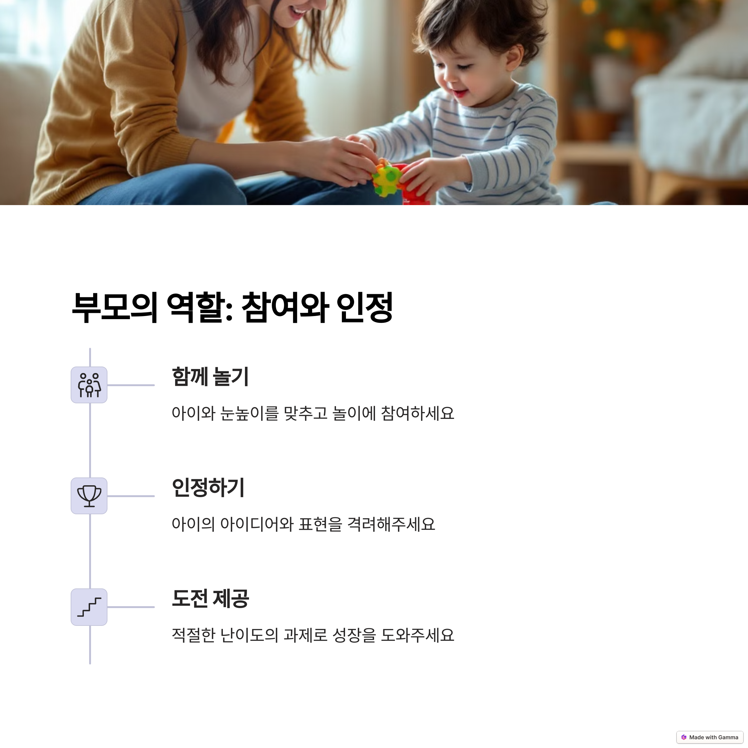 | 창의 놀이 | 놀이 효과 | 부모 참여 |