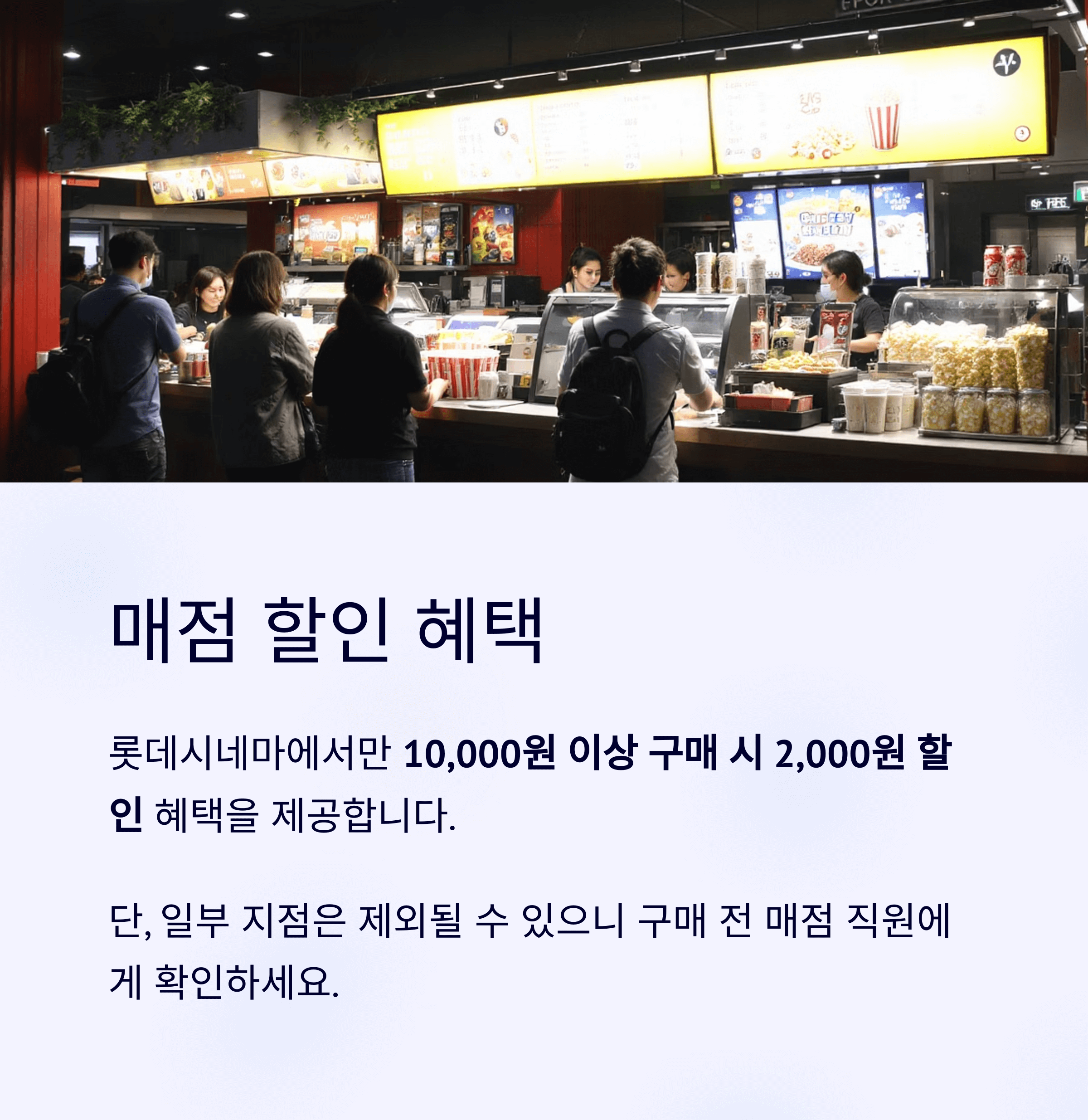 | 롯데시네마 | 동일 | 매점 할인 추가 |